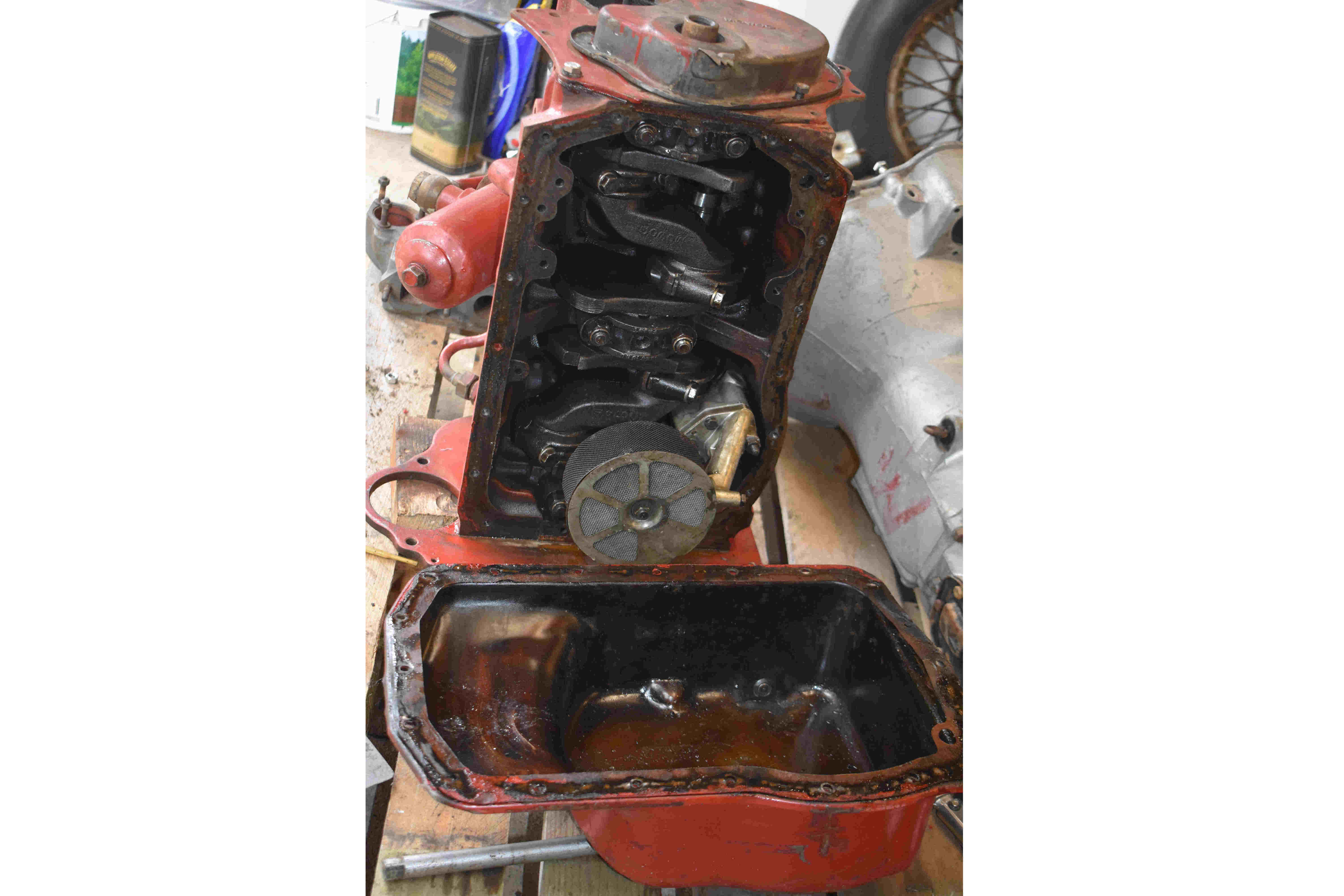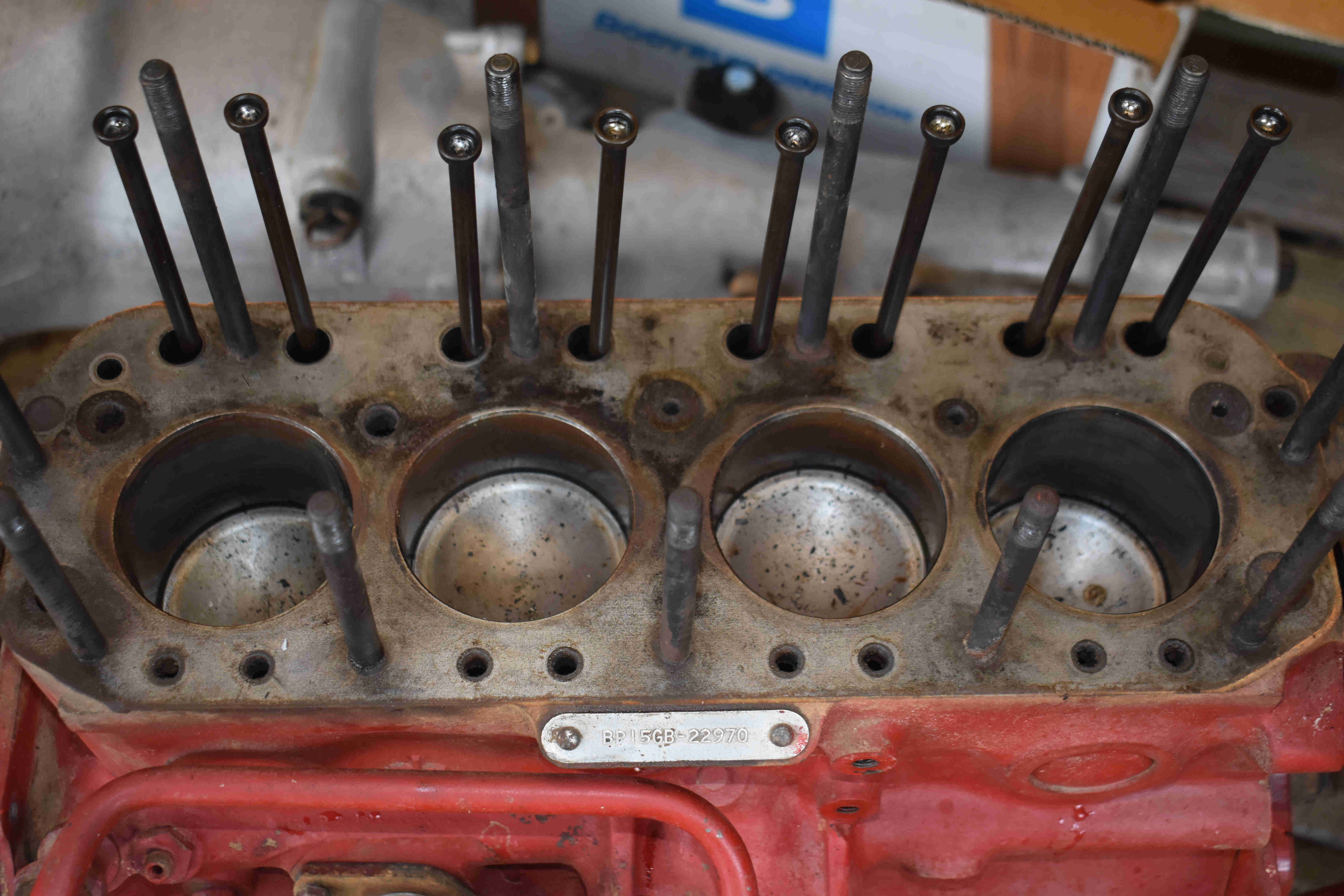 I knew nothing about the history of this engine but, on first impressions, it appears to have been rebuilt but not completed or run. From first looks there are a number of bolts that are missing as well as a number of components that were in a box (crankshaft pulley, fan pulley) rather than on the engine. Closer inspection revealed the crankshaft pulley rivets are excessively loose (presumably why it was in the box) and there is no oil seal on the timing cover. A big giveaway was that (when I clouted it with a spanner) the sump rang like a bell so was completely dry. At least it turns by hand (no starter motor so can not test compressions).
