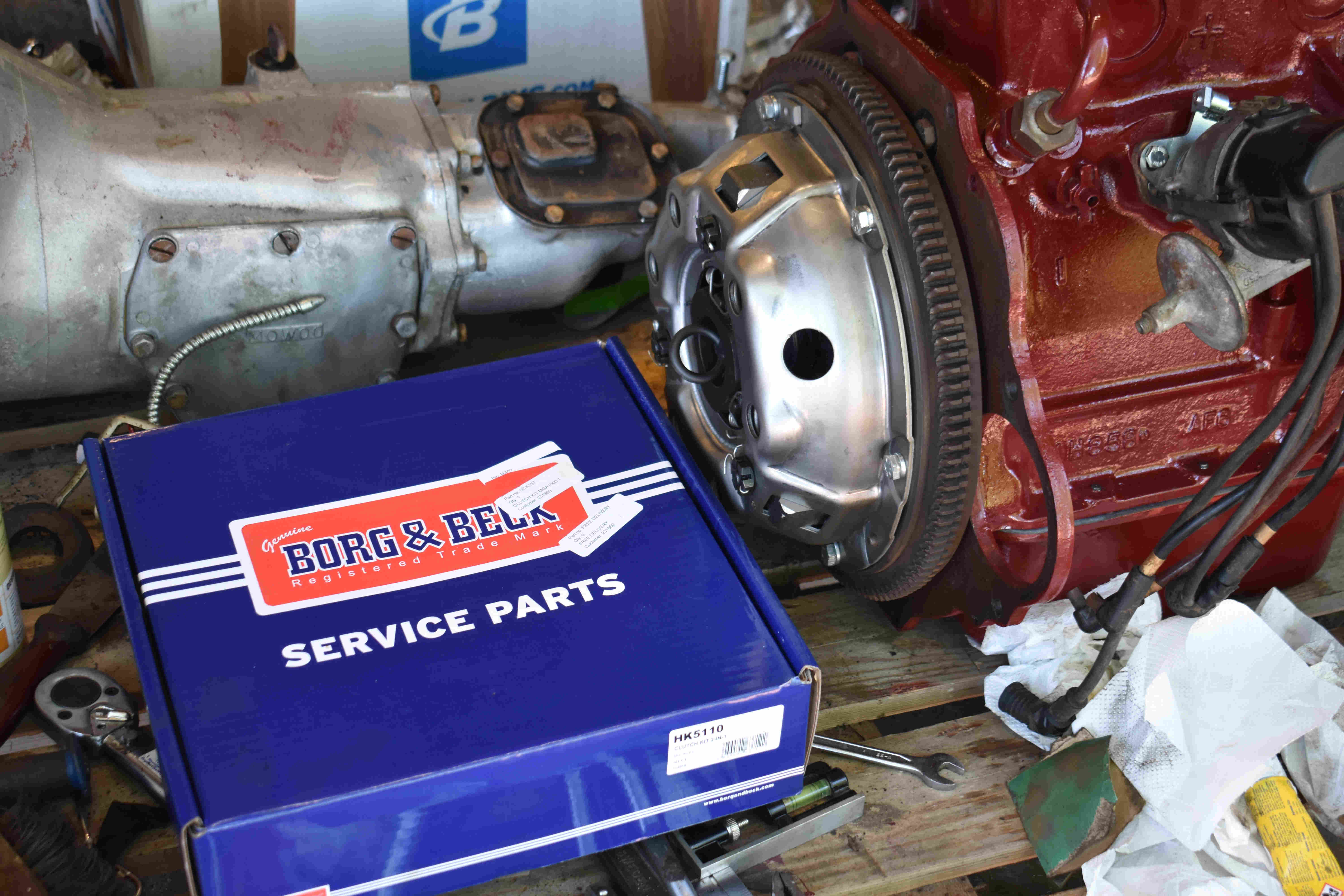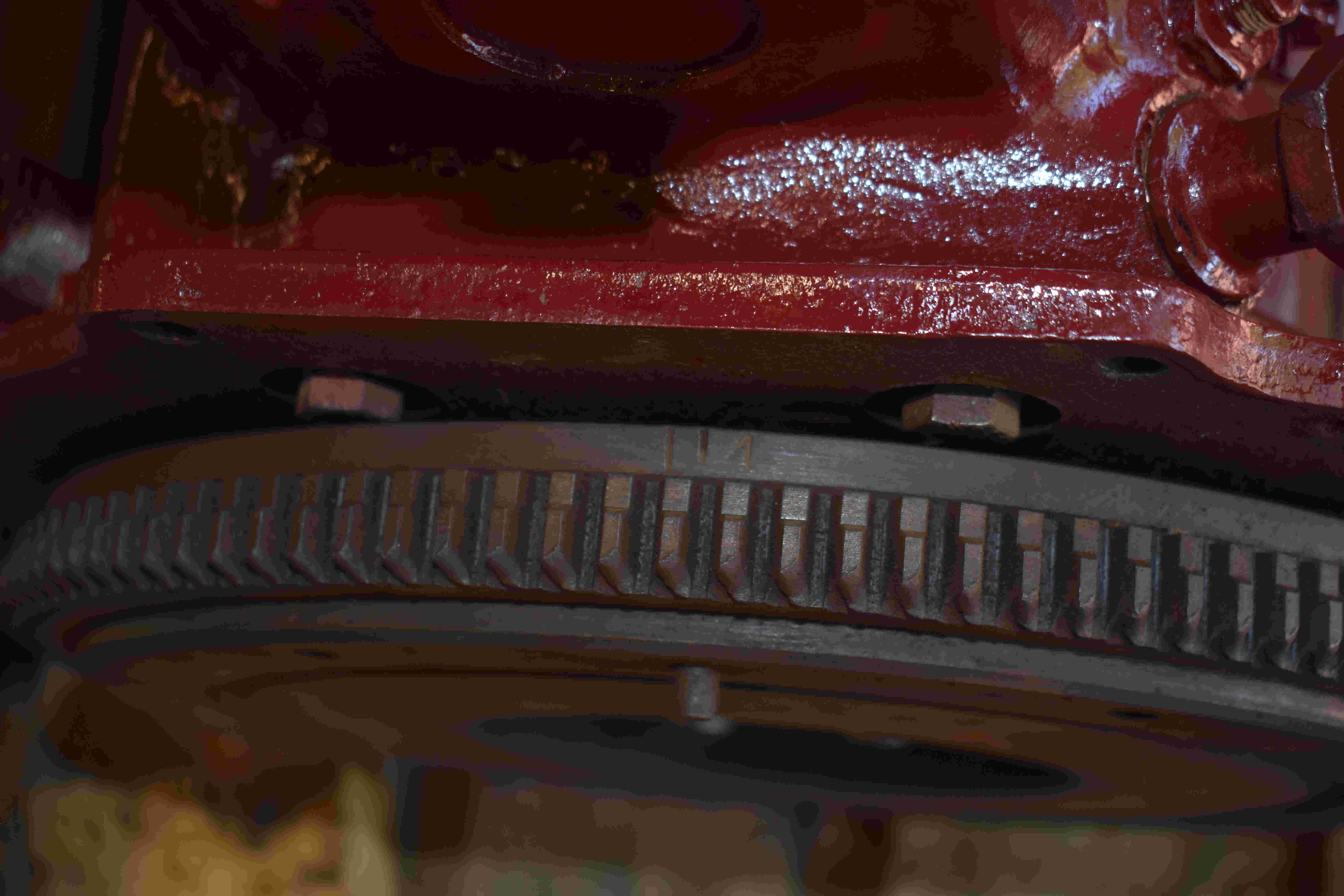 It wasn't until I came to refit the flywheel that I read in the Workshop Manual "Mark the flywheel and crankshaft to ensure correct replacement." - too late. On the MG this is not much of a problem as the components are balanced prior to fitting but it seems a good idea. It also states "On some engines there is a 1/4 mark on the flywheel periphery and this must be in line with and on the same side as the first and fourth throws of the crankshaft flange". Many people have talked about this but they do not provide a photo so it took an age to find (see photo). With that back, the new Borg & Beck HK5110 (GCK257) clutch was fitted and the engine hoisted back into the chassis.