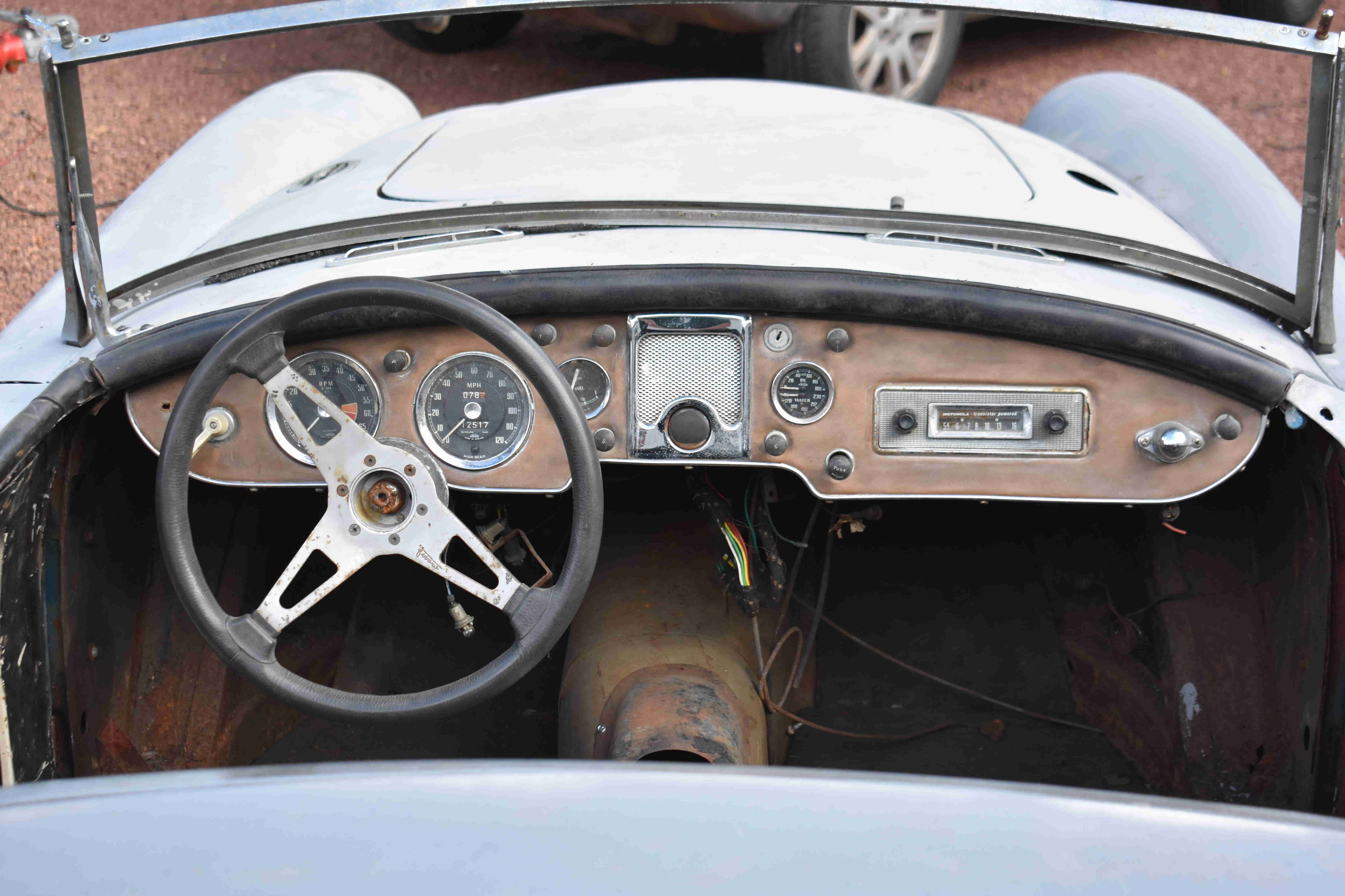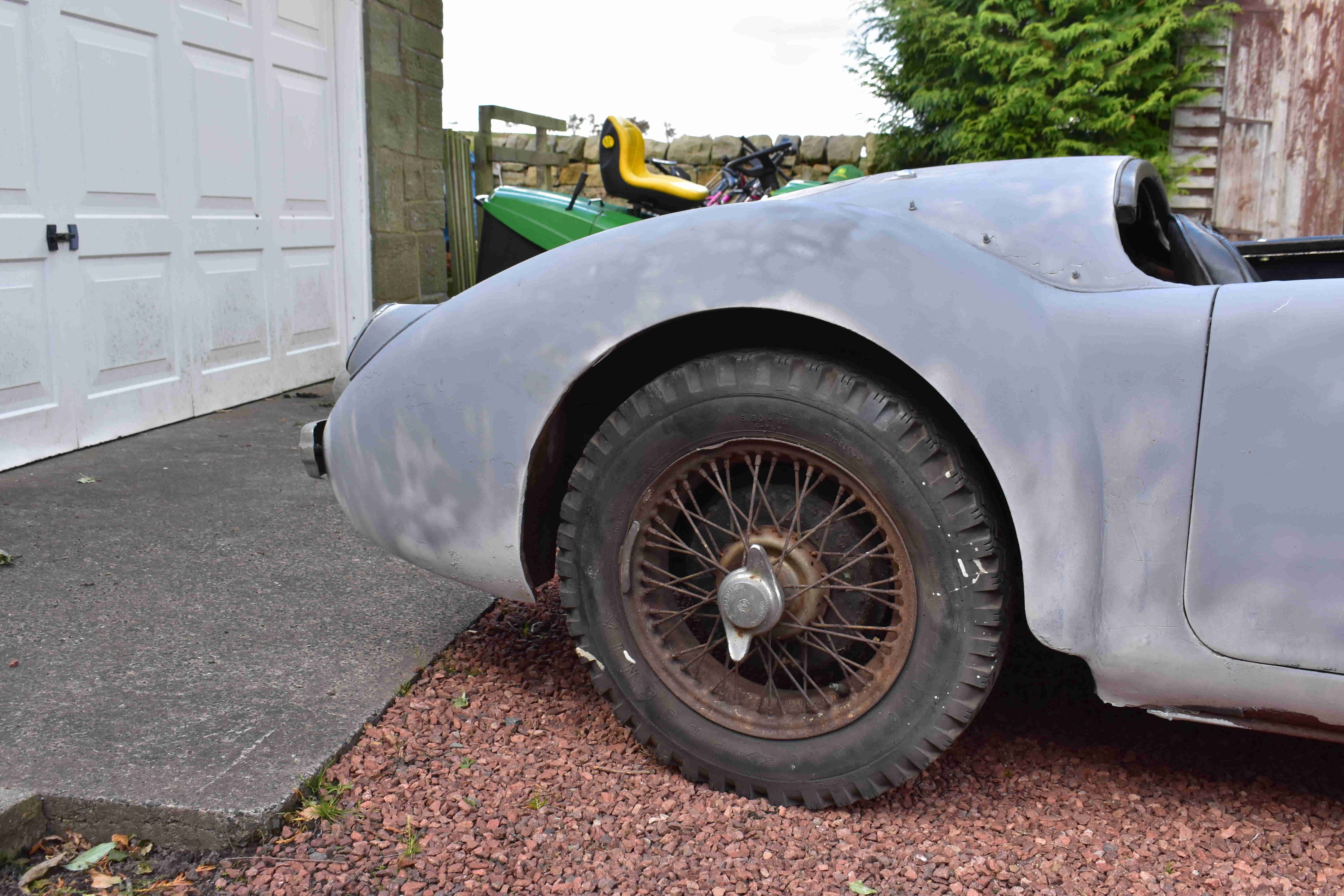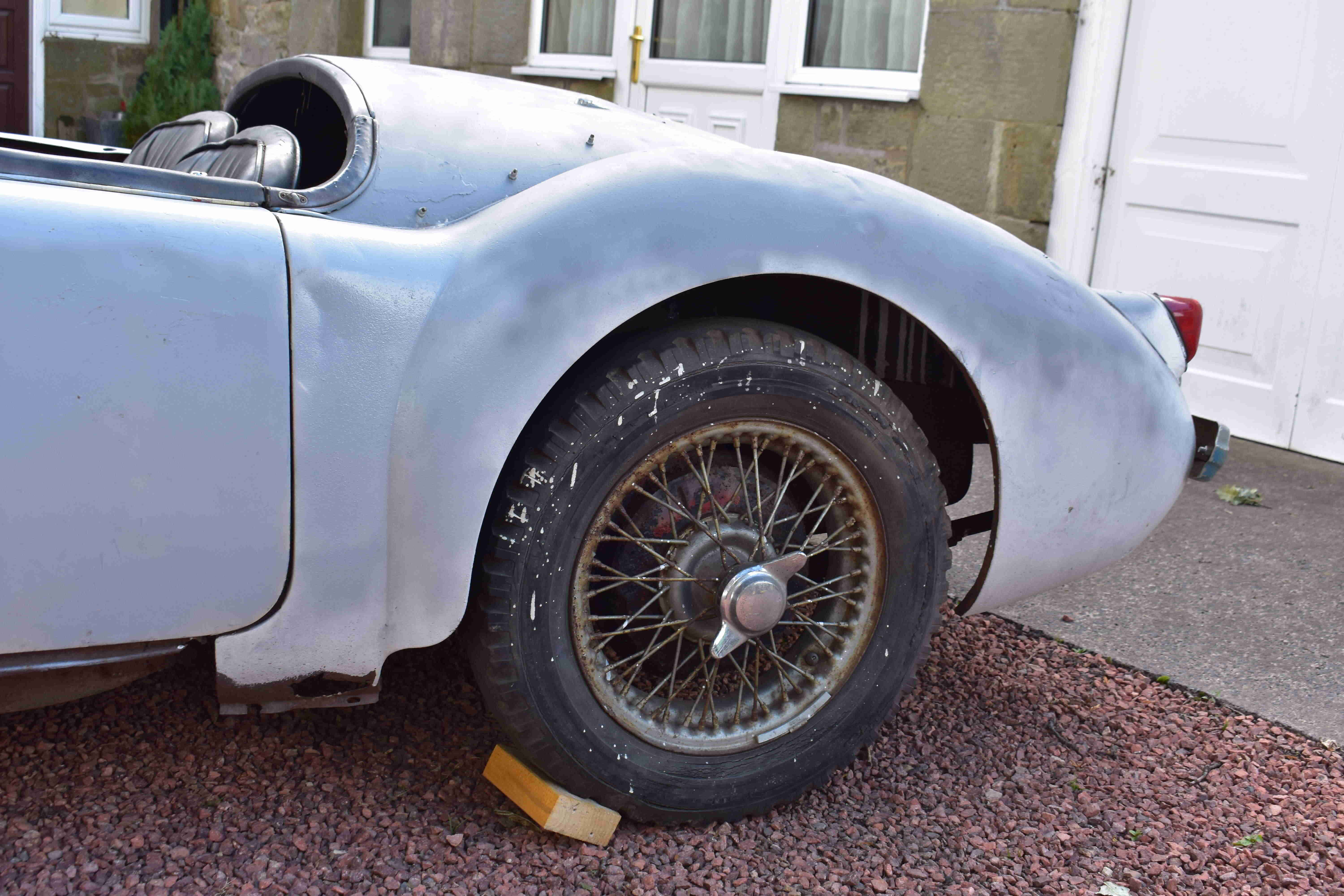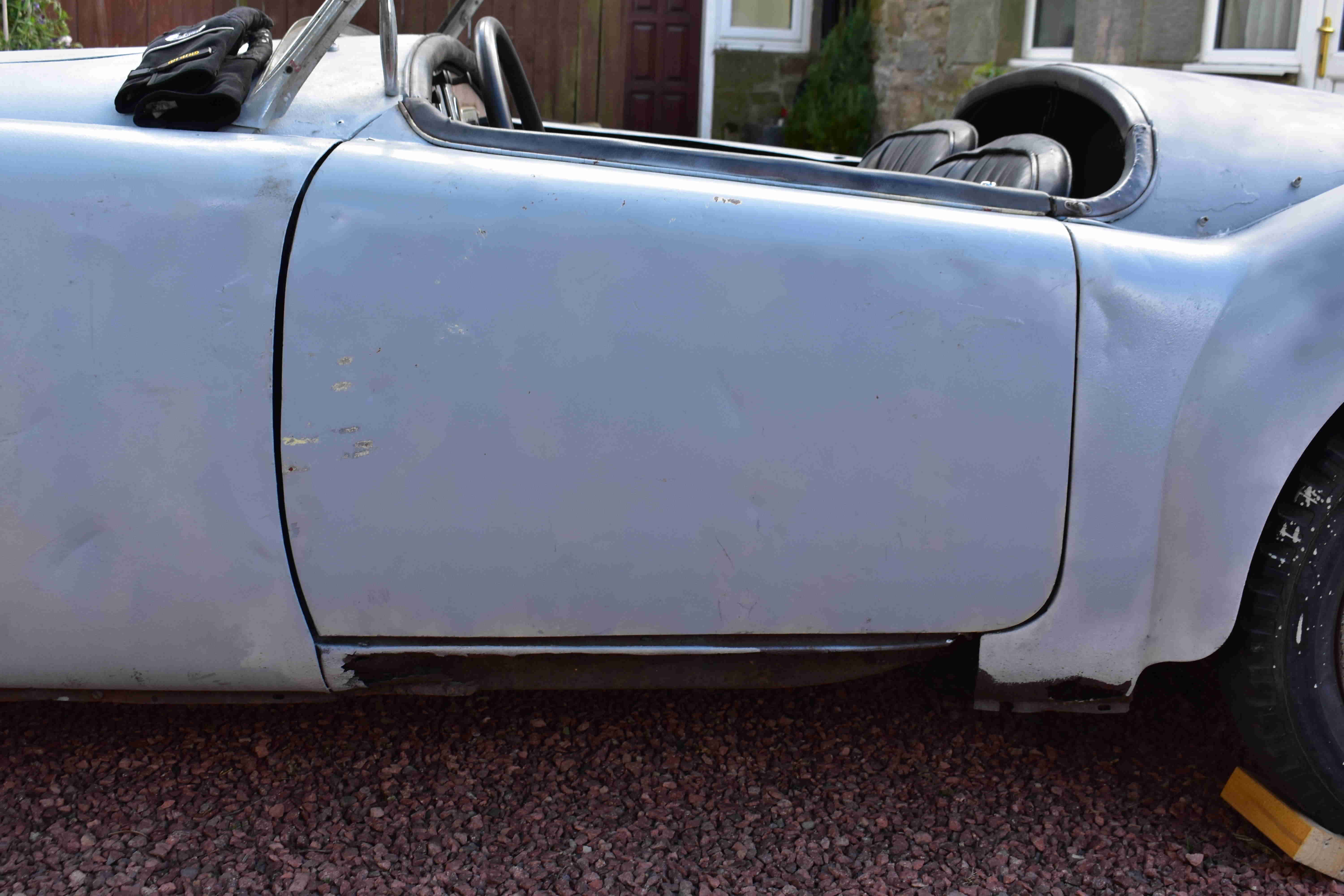 The other side lived up its (low) expectation with a virtually non-existant sill with dented, filled & coroded front & rear wings. As well as a bit of rust on the wire wheels, a few of the spokes are broken.