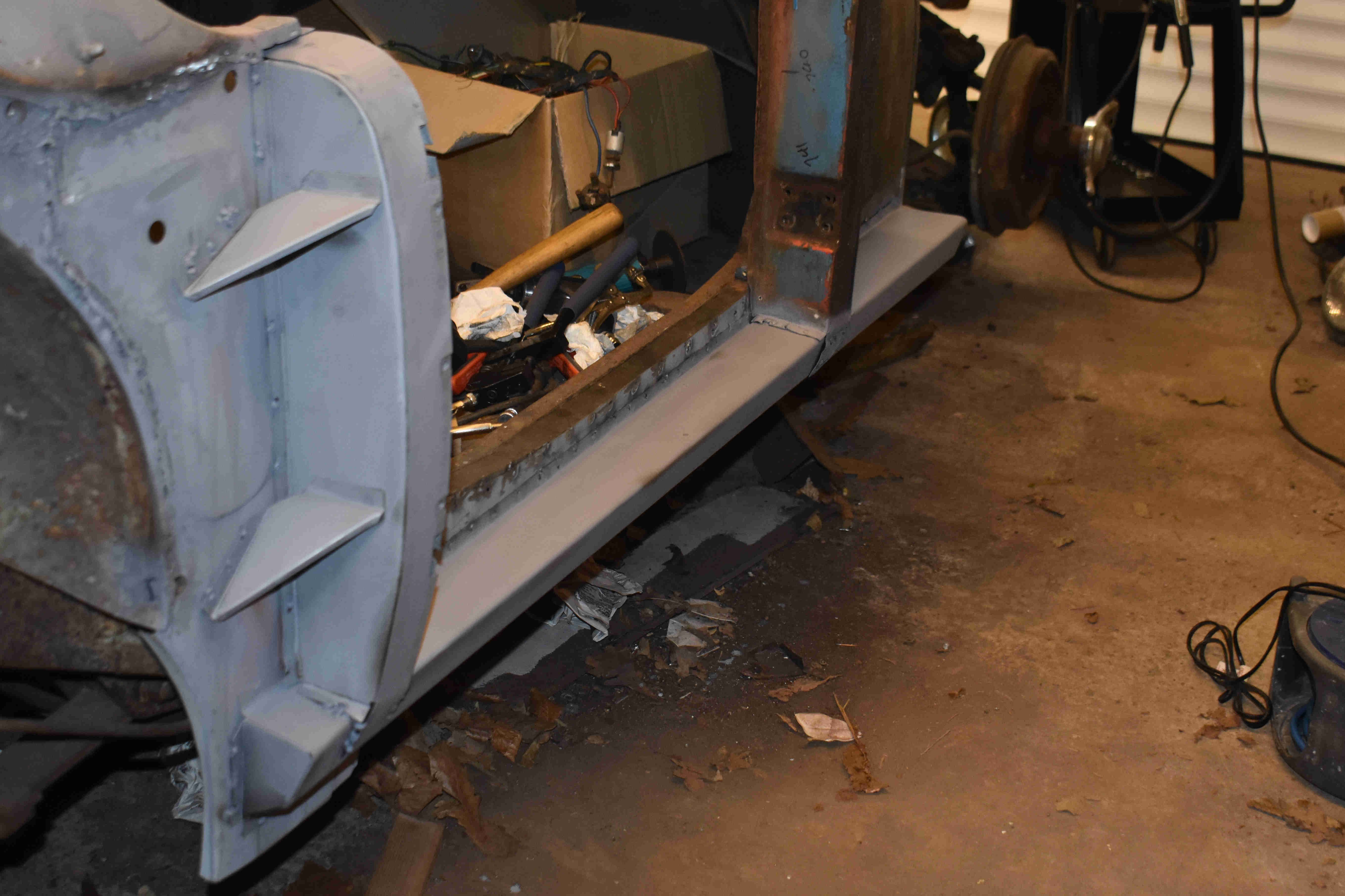 (Update 30/3/2020) I was staggered to look back and see the left hand sill was completed this time last year, and I hadn't posted progress for seven months - where did that time go? Quite simply we have been enjoying ourselves with holidays, running the B&B and generally getting on with other things without spending serious time in the garage. Now, thanks to COVID-19 shuting down our B&B, I'm back in the garage.